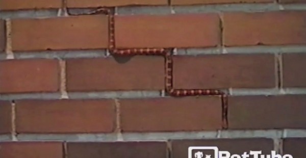 ▲一條橘色小蛇沿著磁磚縫隙爬行如同貪食蛇遊戲。(圖/取自yahoo screen)